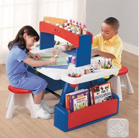 Alessa and Caleighs will receive this Creative Projects Table from our friends at Step 2. It has many compartments for storing art supplies, books and more. It has a large work space and two stools, perfect for twins to be creative together.